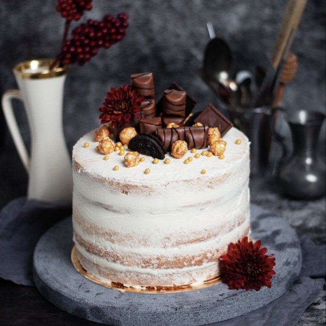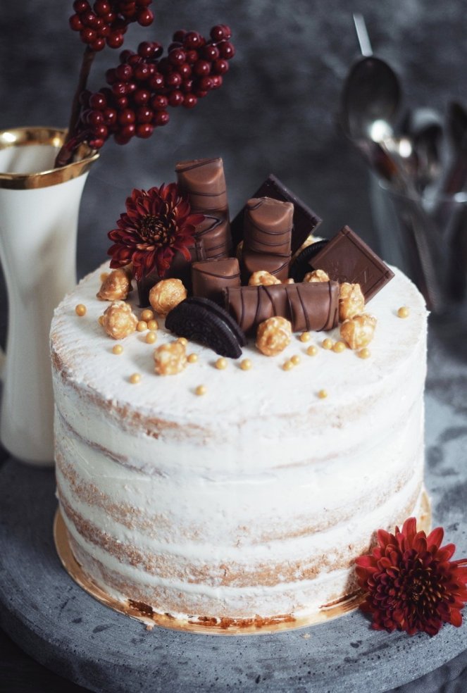 Der Trend in diesem Jahr- Der Naked Cake! Ich liebe es diese Torten zu machen, wo man noch leicht die Böden erahnen kann. Es ist halt mal echt was anderes zu den klassisch eingestrichenen Cremetorten. Und innen kann man ganz besondere Geschmacksrichtungen kombinieren und die Gäste damit umhauen!