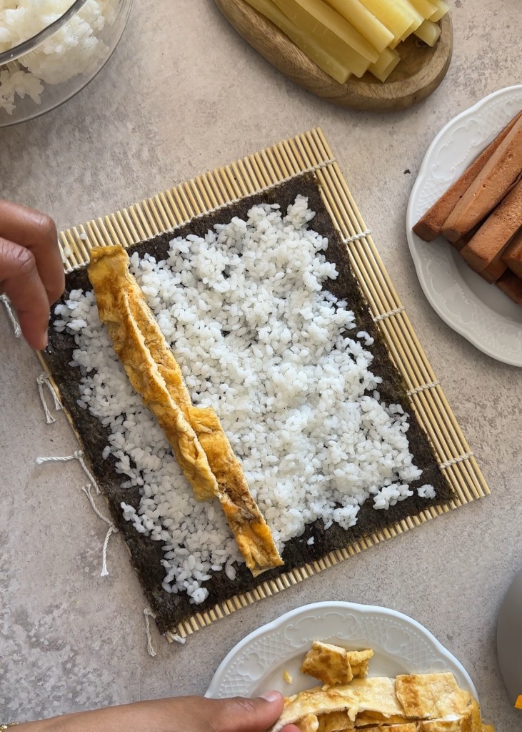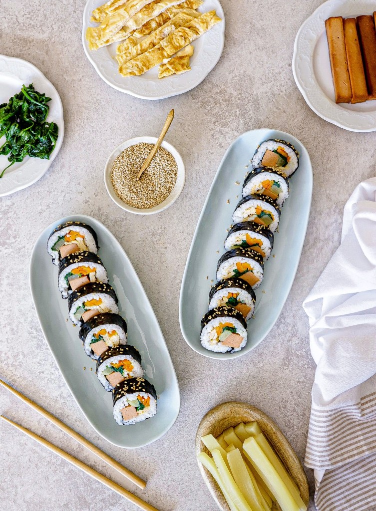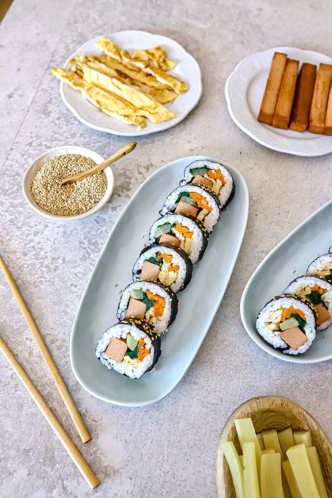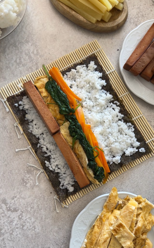 Bei Kimbap werden viele Zutaten zuvor gegart und man isst es eher weniger als Hauptspeise.
