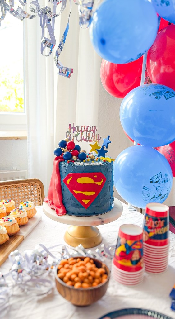 Er war so so stolz und happy mit seiner Superman Torte!Macht das unbedingt mal und lasst eure Kleinen ihre eigenen Torten zeichnen und planen.