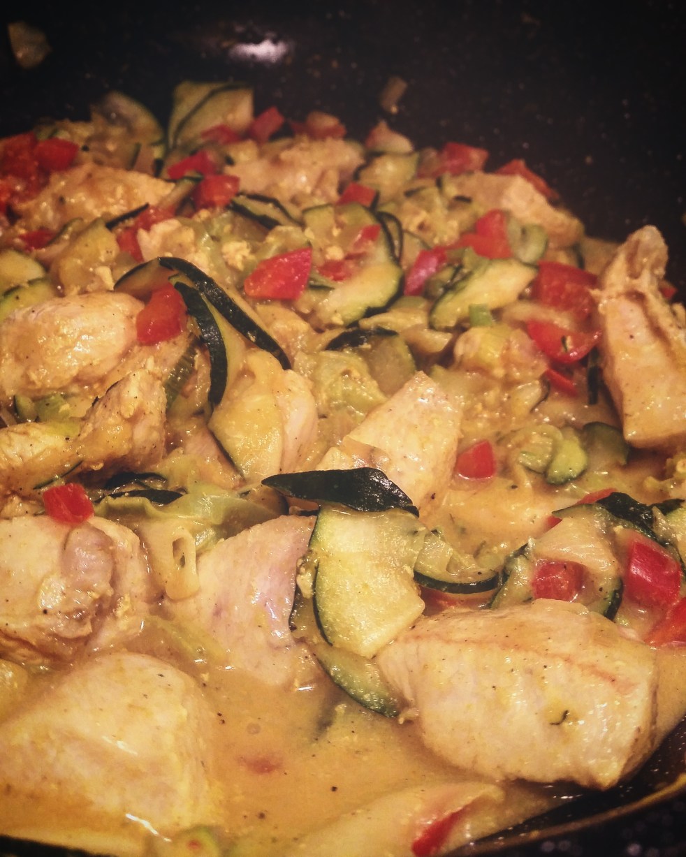 Du hast Lust auf ein herzhaftes Gericht das schnell gehen muss?!ALLES KLAR!Dann probier mal das hier aus! Rezept: ca.250g Hähnchengeschnetzeltes 1 gehobelte Zucchini 1 gewürfelte rote Paprika 1 kleine Zwiebel(nehme gerne Schalotten) 1El Kokosöl 2 El Frischkäse light 0.2% 5 El Milch 1/2 Lauchstange kleingeschnitten 1TlCurry.Salz.Pfeffer.Knoblauchgewürz 1El Sojasosse Prise Zimt(in unserer arabischen Küche ein Muss!)… Weiterlesen Curry-Würzpfanne