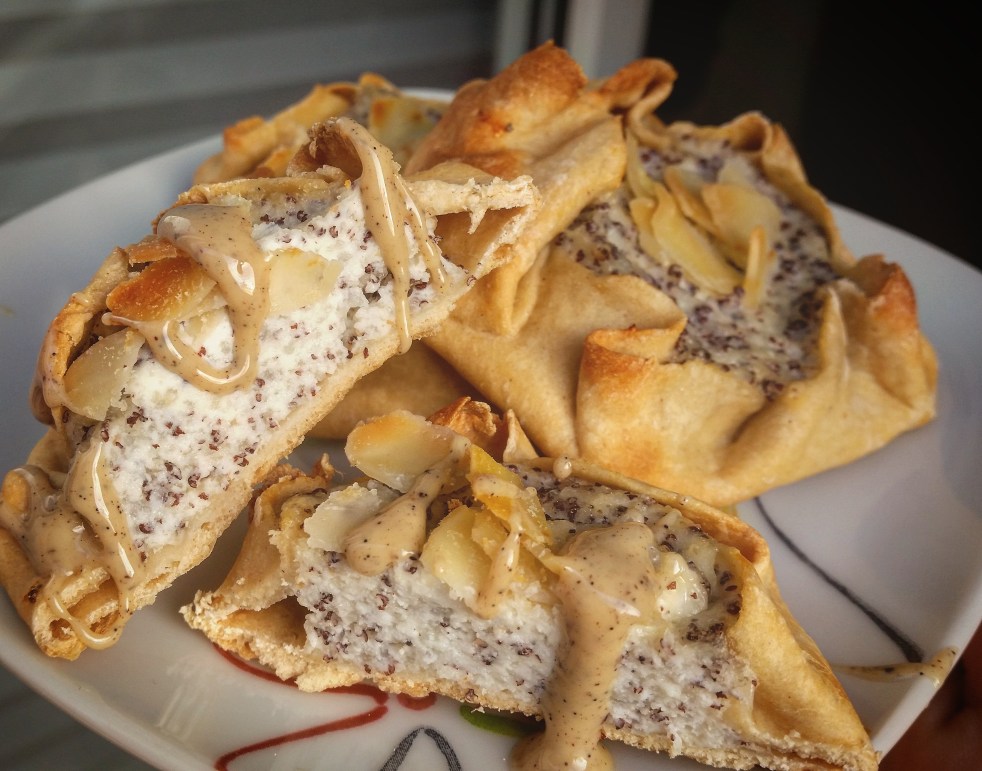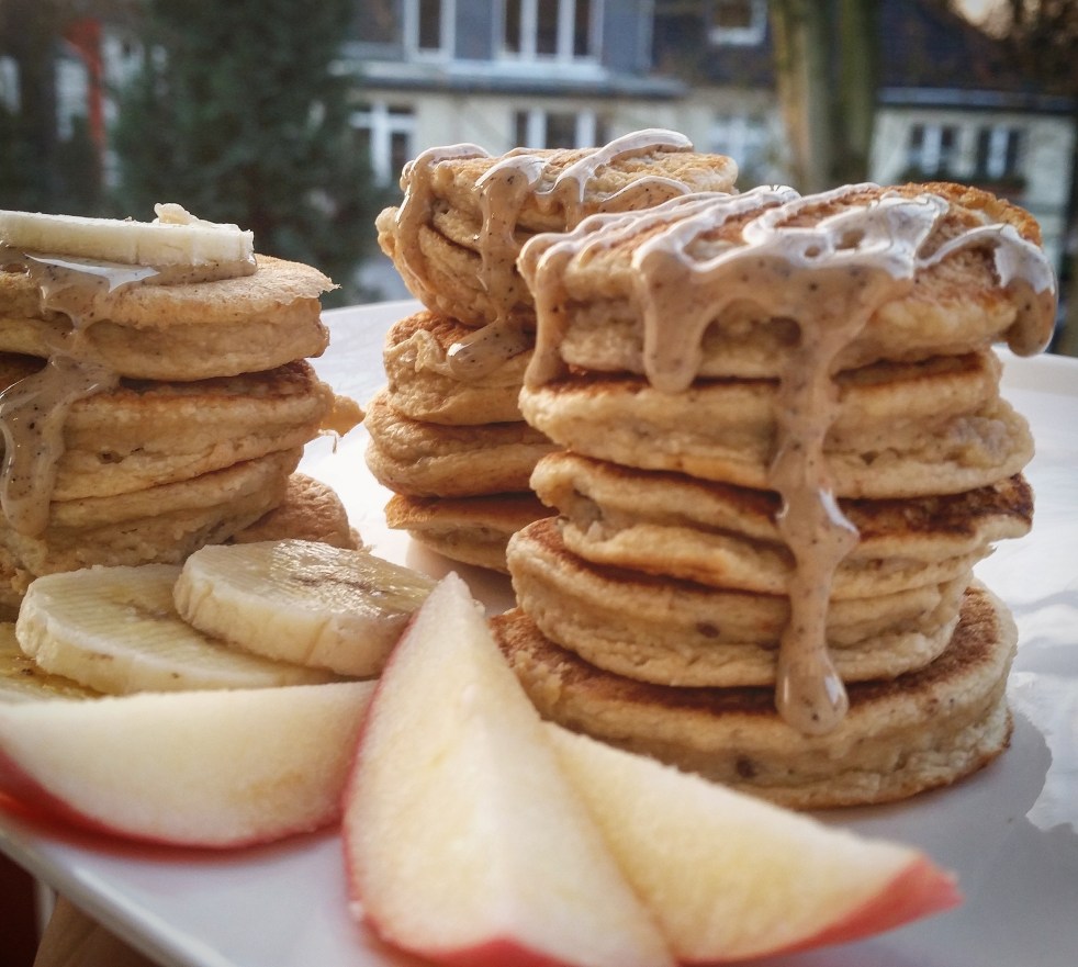 Das hier ist mein absolutes Lieblingsrezept für lockere Pancakes die schnell gemacht sind! 282kcal/20gEW/23g KH/12g F Zutaten: 25g Dinkelmehl 25g Kokosmehl 1Ei 1Tl Flohsamenschalen(ersatzweise mehr Mehl oder 1 El Griess) 1Tl Chiasamen Etwas Natron(ersatzweise Backpulver) 120ml Sojamilch Sprudelwasser(schluckweise) Süsse Zubereitung: Vermenge alle Zutaten miteinander und gib so viel Sprudelwasser hinzu bis eine cremige Konsistenz entsteht.Beachte,… Weiterlesen Pancakes