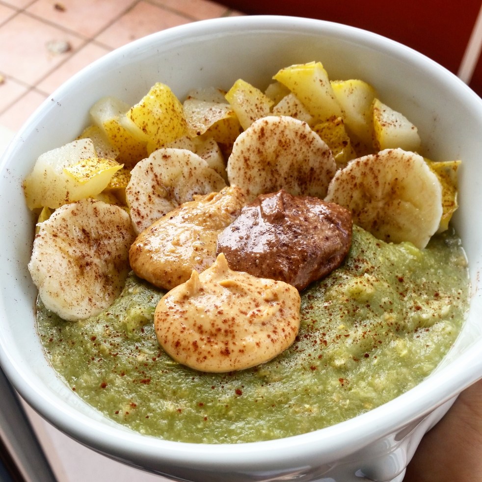 Du findest deine Oatmeal-Portion am Morgen immer etwas mager?Dann pass auf! Mit Zucchinis im Haferbrei bekommst du fast die doppelte Portion raus.Eine XXL-Schüssel ! Die ganze Schüssel ohne Obst berechnet aber inkl.25g Nussmus deiner Wahl: 320kcal/ 17g EW/ 29g KH /15g F REZEPT: 200g Zucchini 200ml Caramel Apple Pie Teewasser 20g Haferflocken 10g Dinkelgriess 5g… Weiterlesen Zoats (Zucchini-Oats) Extra Green