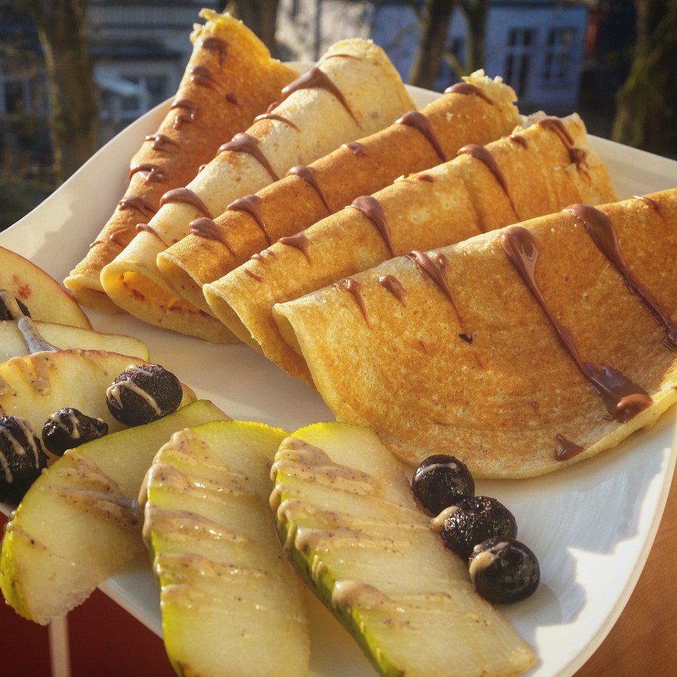 Wie wärs mal wieder mit gesunden Crepes zum Früstück?!Ich süße meine Crepes nicht so stark,da sie bei mir immer einen süßen Aufstrich bekommen(oder sogar mal herzhaft..dann ganz ohne Süße) Zutaten: 200g Dinkelmehl 2Eier 300 ml Sojamilch Süße nach Bedarf(Bei mir 1EL Honig) Zubereitung: Alle Zutaten mit einem Schneebesen vermengen und kurz aufschlagen. Dann kannst du… Weiterlesen Crepes